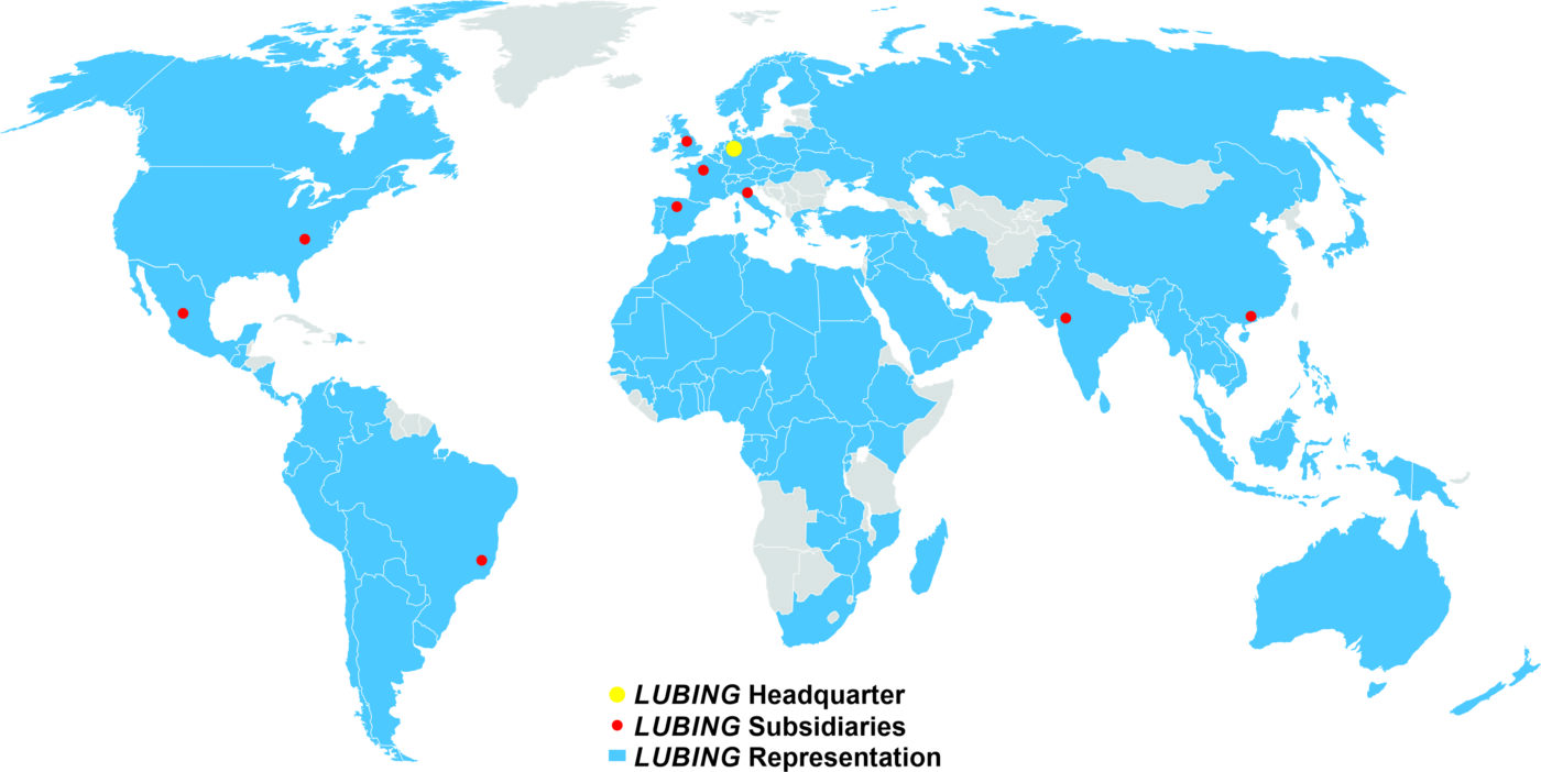 LUBING is regarded as a market leader and is always striving to meet the high expectations with its qualified staff, continuous high quality and trend-setting innovations. Nine subsidiaries and 34 representative agencies abroad covering 87 countries speak for themselves, as well as the fact that the former three-man business enterprise now has more then 200 employees in Germany alone.